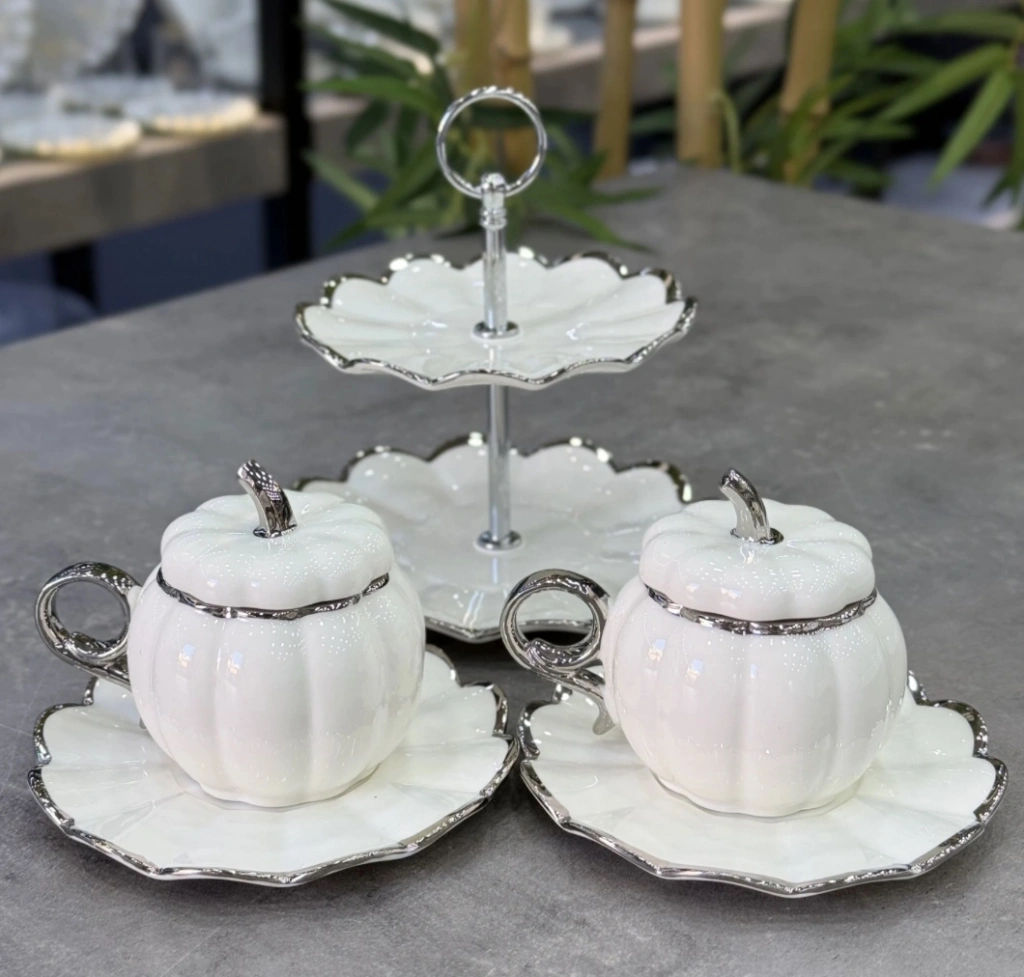 Lüx Porselen İstiridye Sunumlu 2 Li Fincan Takımı