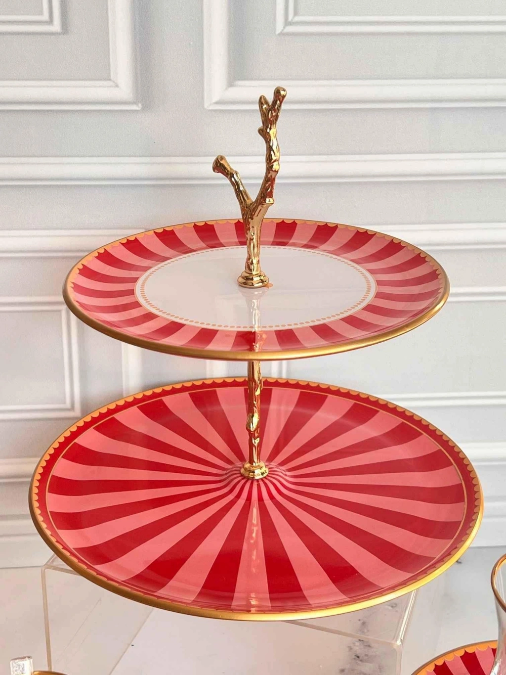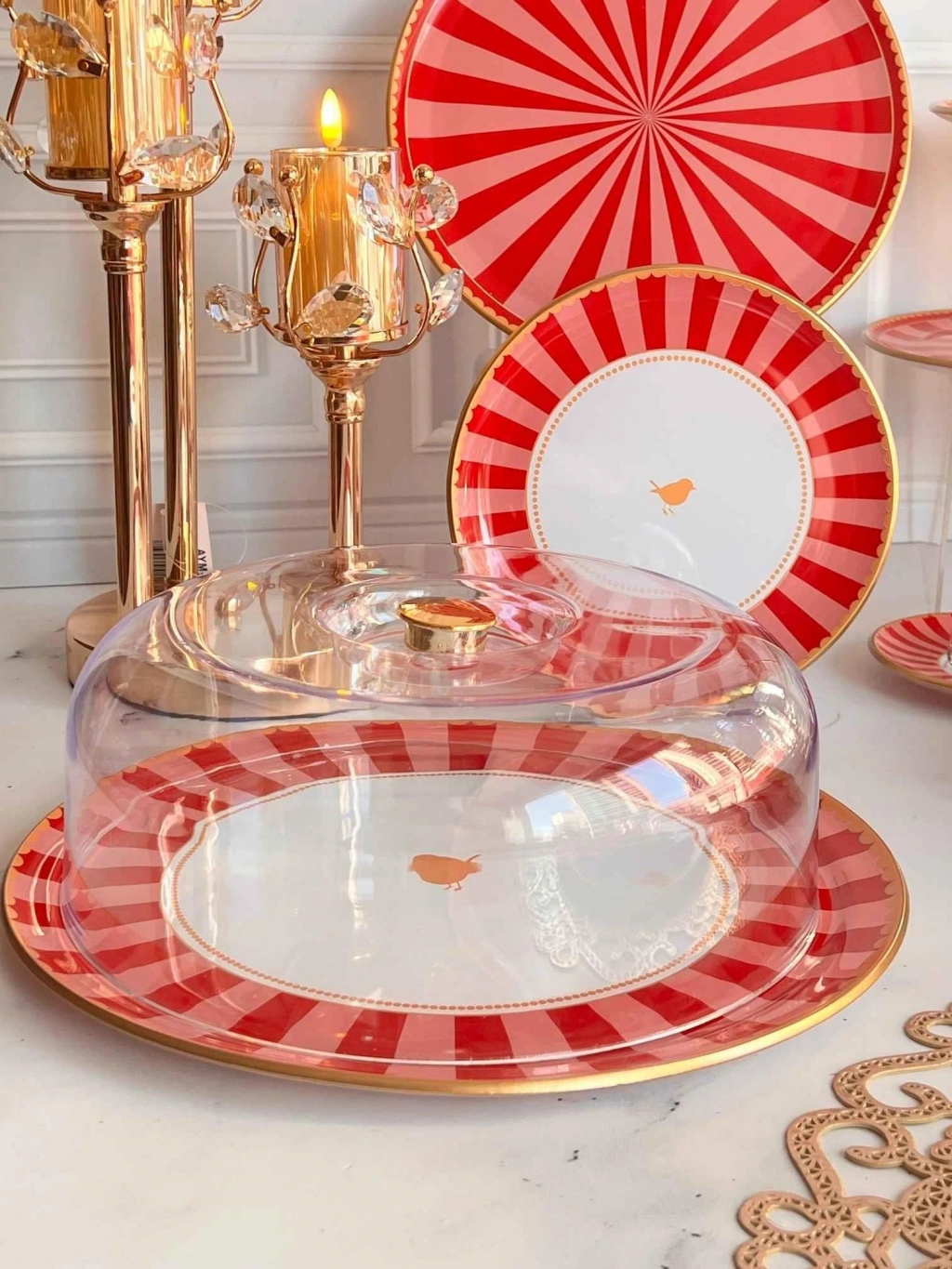 1 adet 31cm altın yaldızlı cam kek tepsisi