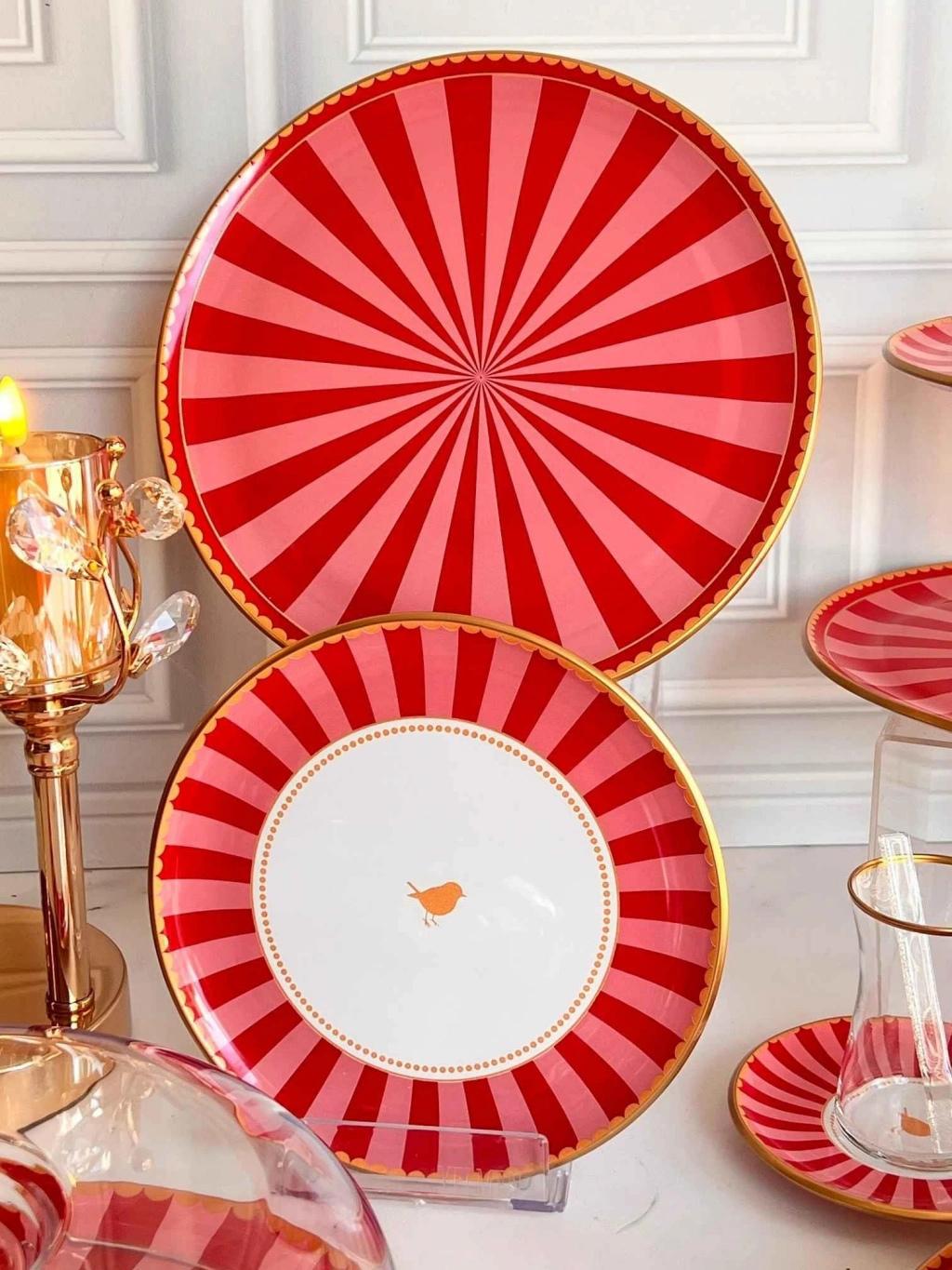 6 adet 21cm altın yaldızlı cam pasta tabağı