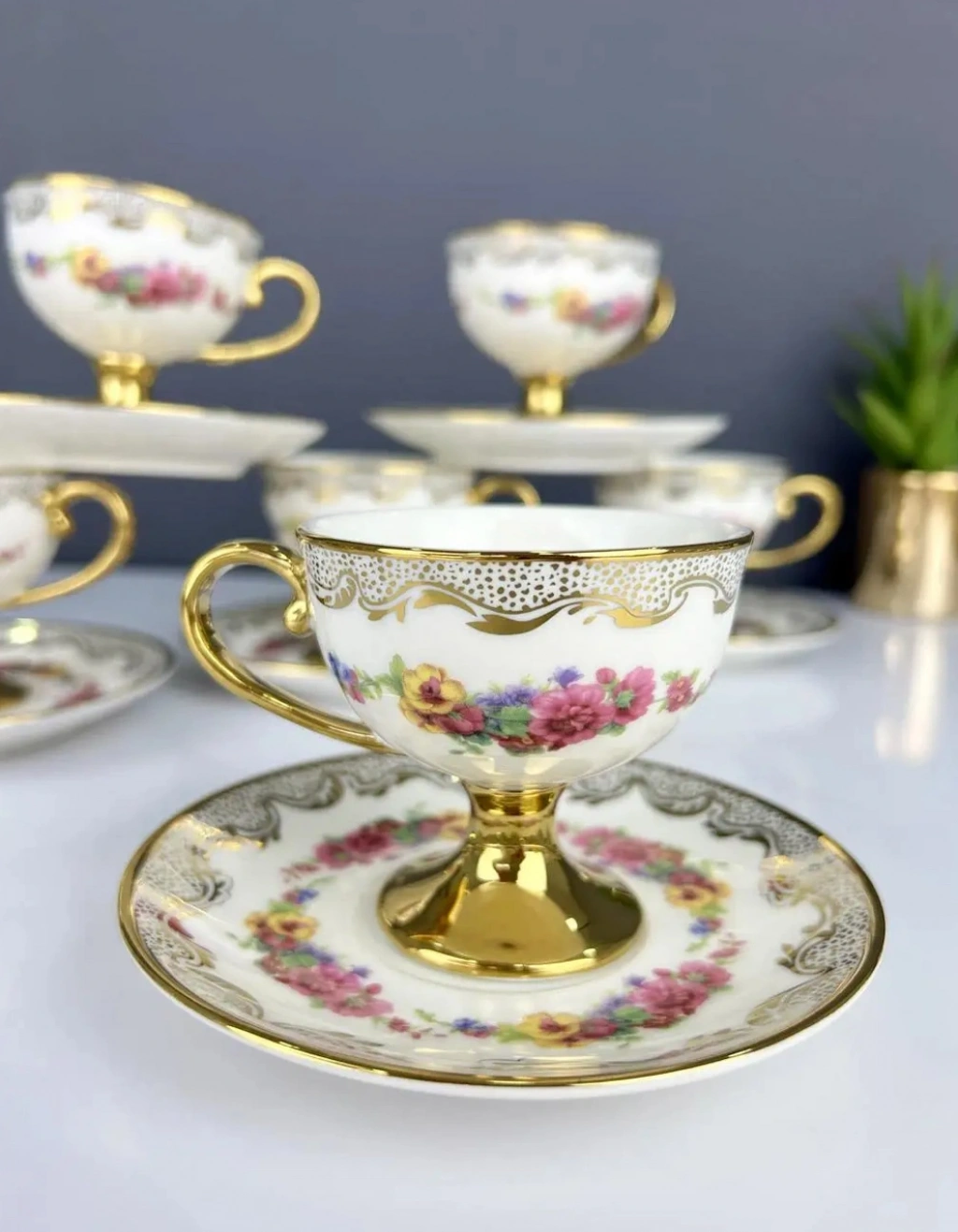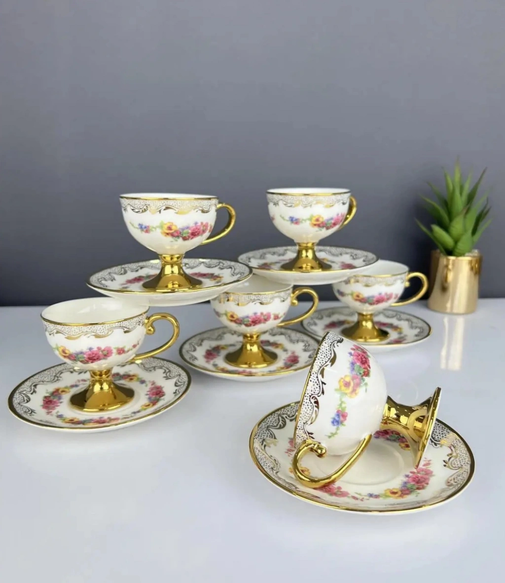 Lüx Porselen İstiridye Sunumlu 2 Li Fincan Takımı Gold