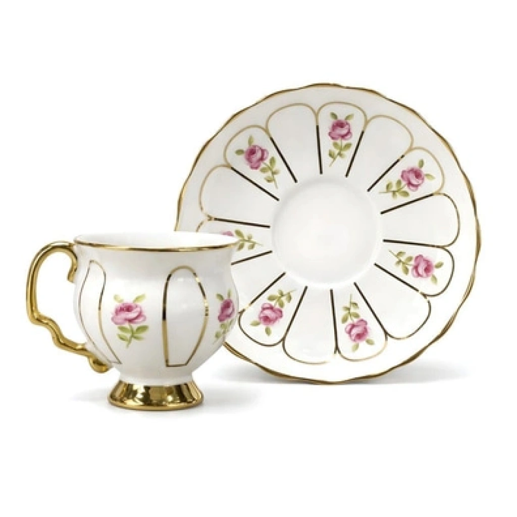 Lüx Porselen İstiridye Sunumlu 2 Li Fincan Takımı Gold