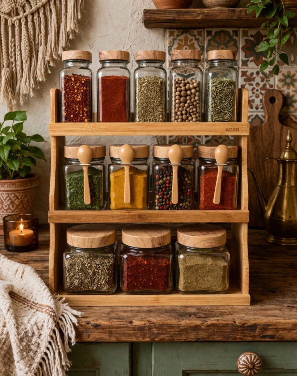 Bambu standlı 12 Li baharatlık