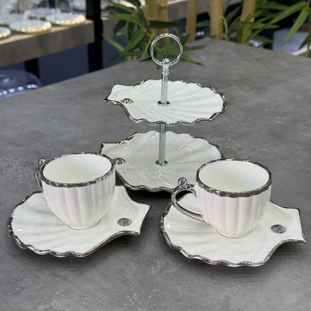Lüx Porselen İstiridye Sunumlu 2 Li Fincan Takımı